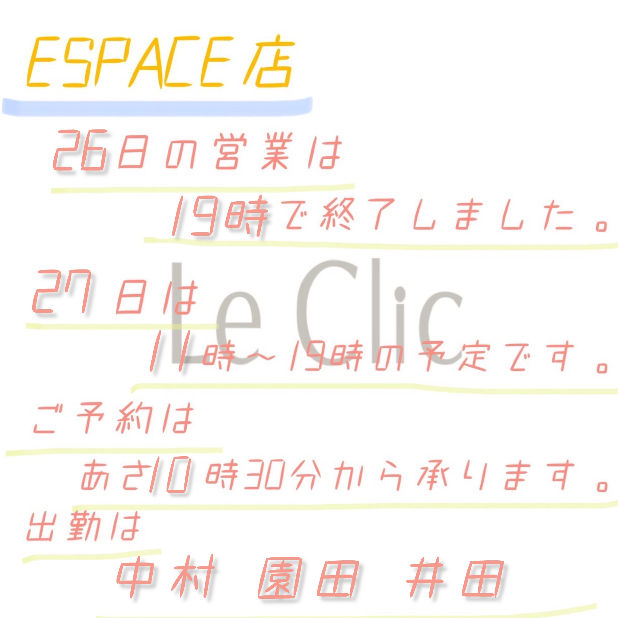 明日、27日(木)は11時〜19時の営業予定とさせて頂きます。